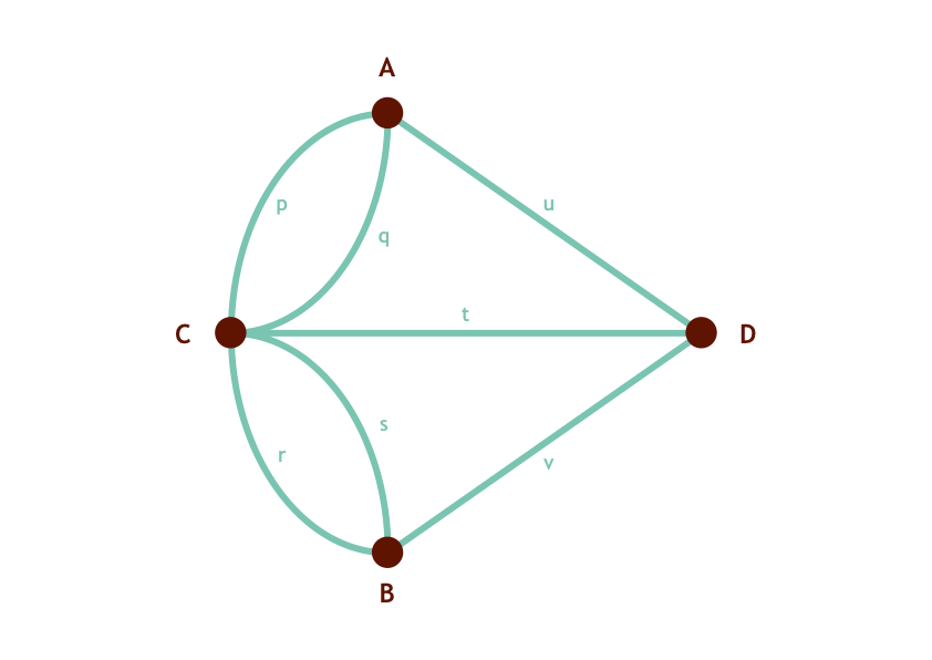 Abstraction can also be used to generalise solutions, such as the famous Seven Bridges of Koenigsburg problem, which laid the foundations for modern graph theory. Euler showed that these two images can actually represent the same thing, but mathematicians much prefer the second one for reasons which I hope are obvious: